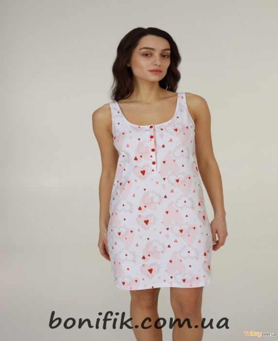 Нужный размер и цвет, указывайте в комментариях к заказу! Женская ночнушка от украинского производителя ТМ "ELLEN" (г. Луцк). Изделие изготовлено из качественной хлопковой ткани, имеет полуприталенный крой. Ночная сорочка на широкой бретели, длины выше колена. Ночнушка белого цвета с рисунком сердечек, спереди есть застёжка на пуговицы. Сорочка дарит необыкновенную свободу действий и легкость при носке. Материал не вызывает аллергических реакций и раздражений даже на самой нежной коже. В нашем интернет магазине, мы будем рады каждому покупателю! Цвет: как на фото Размер: S, M, L, XL, XXL Состав: 95% хлопок, 5% эластан Информация о продавце