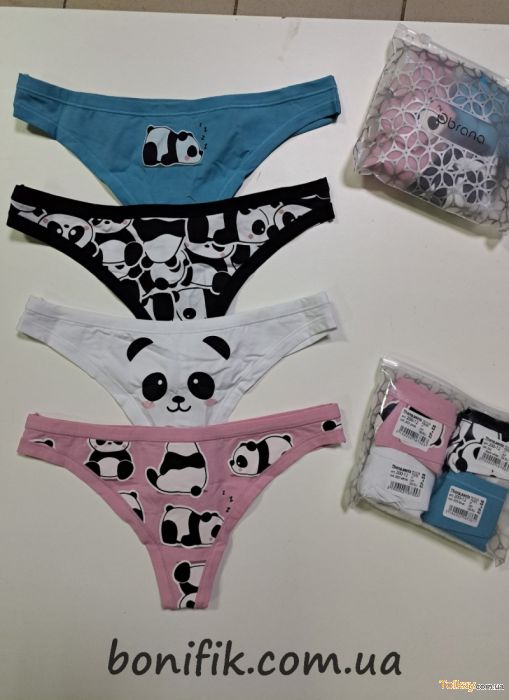 Нужный размер и цвет, указывайте в комментариях к заказу! Женские трусы от известного украинского производителя ТМ "Obrana" (Anabel Arto). Женские хлопковые трусики-стринги с рисунками красивых пандочек. Модель белья в упаковке с 4 штук разной расцветки. Хлопок отлично проводит воздух, очень прочный и долговечный. Бельё из хлопка практичное и удобное, с большим модельным ассортиментом который поможет сделать выбор по своему вкусу и настроению. Цвет: ассорти Размер: 46, 48 Состав: 92% хлопок, 8% эластан Информация о продавце