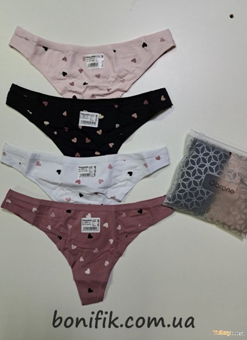 Женские трусики-стринги с рисунком сердечек (4 шт./уп.) (арт. 200-12/3) - ДнепропетровскСрок подачи: 23-04-2026