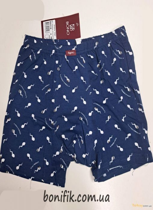 Нужный размер и цвет, указывайте в комментариях к заказу! Мужские боксёрки торговой марки "Bono". Изделие из хлопка светлого цвета с добавлением эластана. Трусы подойдут для повседневной носки и станут отличным вариантом для активного занятия спортом. Дополнены принтом "сперматозоидов" по всей длине трусов. Благодаря индивидуальным качествам материала, Ваша кожа "дышит" и быстро впитывает влагу. Хорошо держится на теле, не передавливает кожу, долго сохраняет вид новизны. Состав: 95% хлопок, 5% эластан Размер: 50, 52, 54 Цвет: синий Информация о продавце