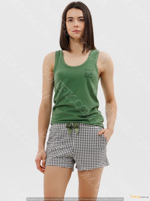 Нужный размер и цвет, указывайте в комментариях к заказу! Комплект пижамы из коллекции "Cats" от украинского производителя ТМ "Roksana". Комплект состоит из майки контрастного зелёного цвета и комфортных шортиков. Майка на широких бретелях и круглым вырезом. Шорты с мягкой резинкой на поясе, декорирована принтом черно-белую клетку. Пижама изготовлена из лучшего мягкого хлопкового волокна. Комплект приятный к телу, легко носится, а также не вызывает аллергии и раздражений на коже. Будем рады видеть в нашем магазине "Бонифик", добро пожаловать за покупками! Цвет: как на фото Размер: S, M, L, XL, XXL, XXXL Состав: 95% хлопок, 5% эластан Информация о продавце