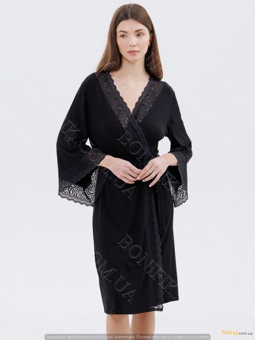 Женский чёрный халат с кружевом "Amour" (60047) (арт. 1347) - ДнепропетровскСрок подачи: 28-04-2026