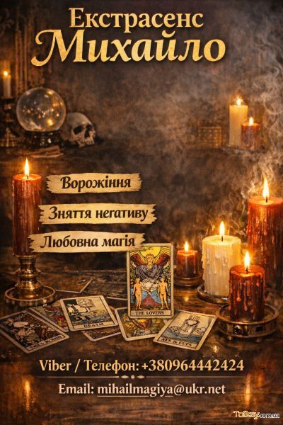 Я Михайло, практикуючий маг та екстрасенс. Допомагаю людям у ситуаціях, коли здається, що життя виходить з-під контролю: руйнуються стосунки, переслідують постійні невдачі, виникають фінансові труднощі, з’являється тривога та відчуття важкої енергії.